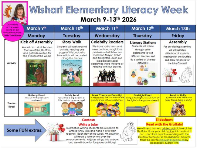 Literacy Week is next week – please see below for all the activities happening around Wishart March 9th – 13th.